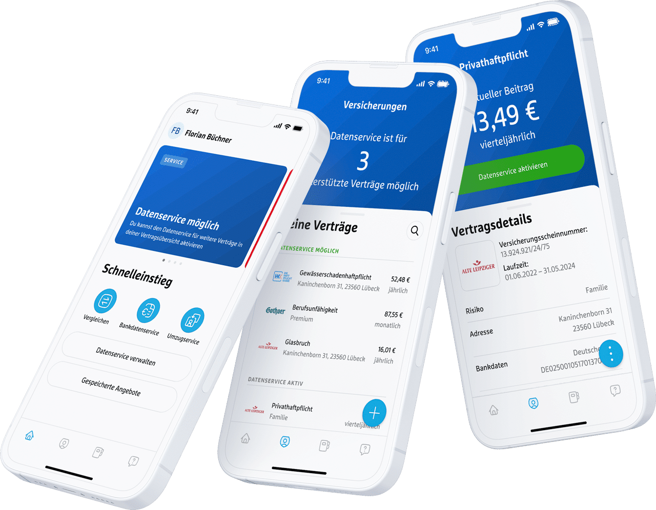 Dank integrierter Vergleichsrechner kannst du deine Versicherungen flexibel an deine aktuelle Lebenssituation anpassen und bestehende Verträge bequem überprüfen.